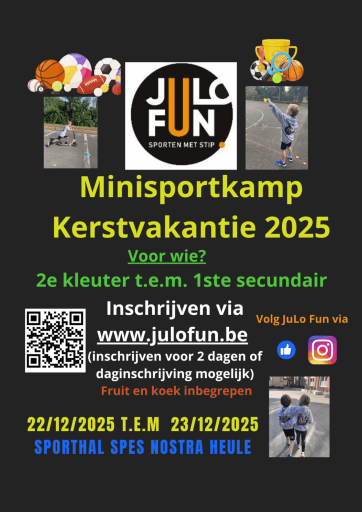 Minisportkamp Kerstvakantie 2025: Maandag 22 december en Dinsdag 23 december 2025