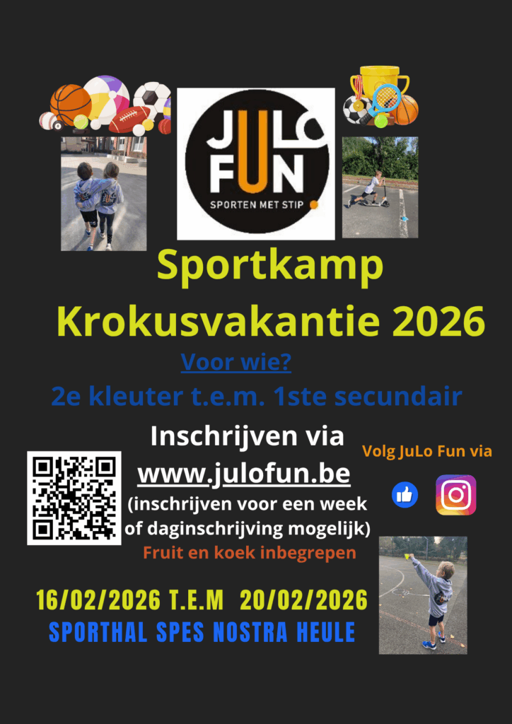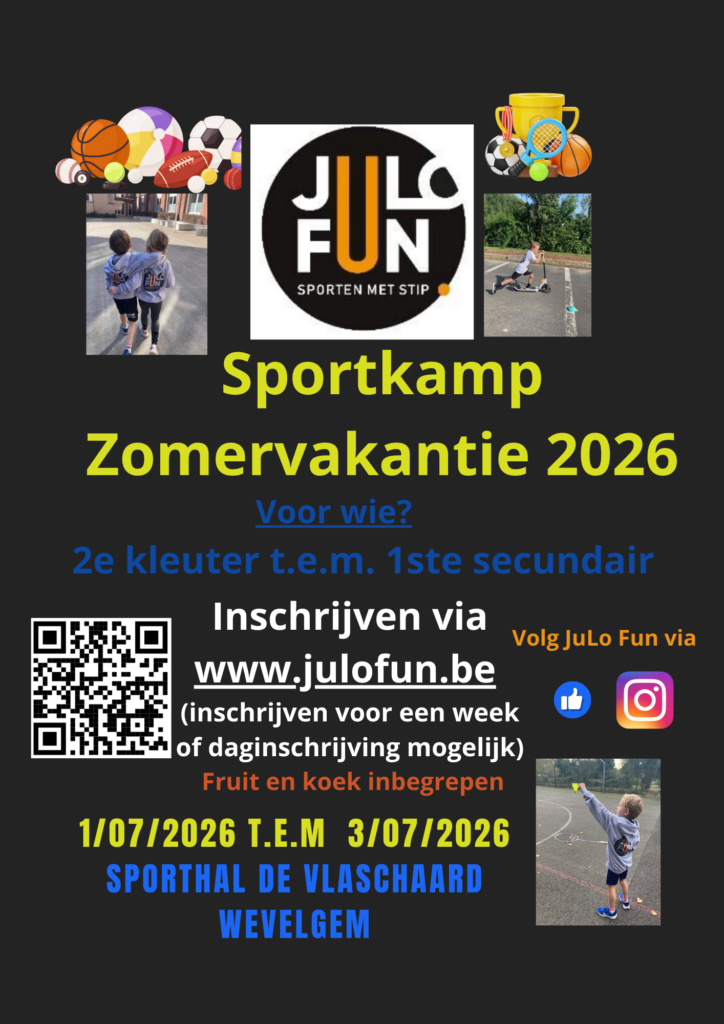 - Sportkamp Zomervakantie: woensdag 1 juli t.e.m. vrijdag 3 juli 2026